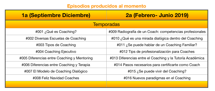 Te prometo en la mitad de agosto de 2019, un nuevo calendario de episodios, para que logremos iniciar un viaje, el tercero juntos, desde septiembre a diciembre y que, con nuevas herramientas, podamos darle la bienvenida al 2020 y a todo lo que le depara al coaching profesional.